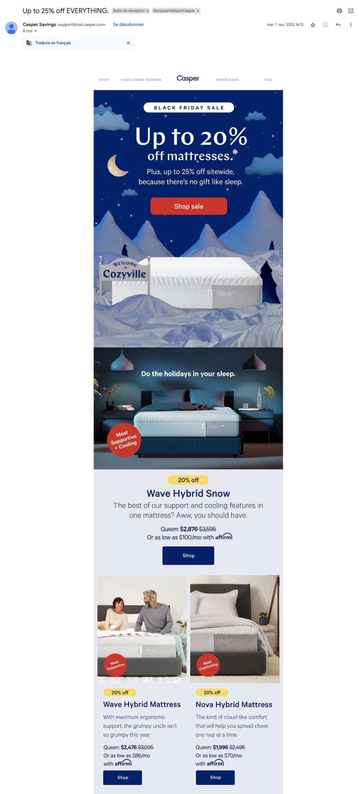Par exemple en 2023 la marque Casper a lancé ses promos 15 jours en amont de Black Friday.